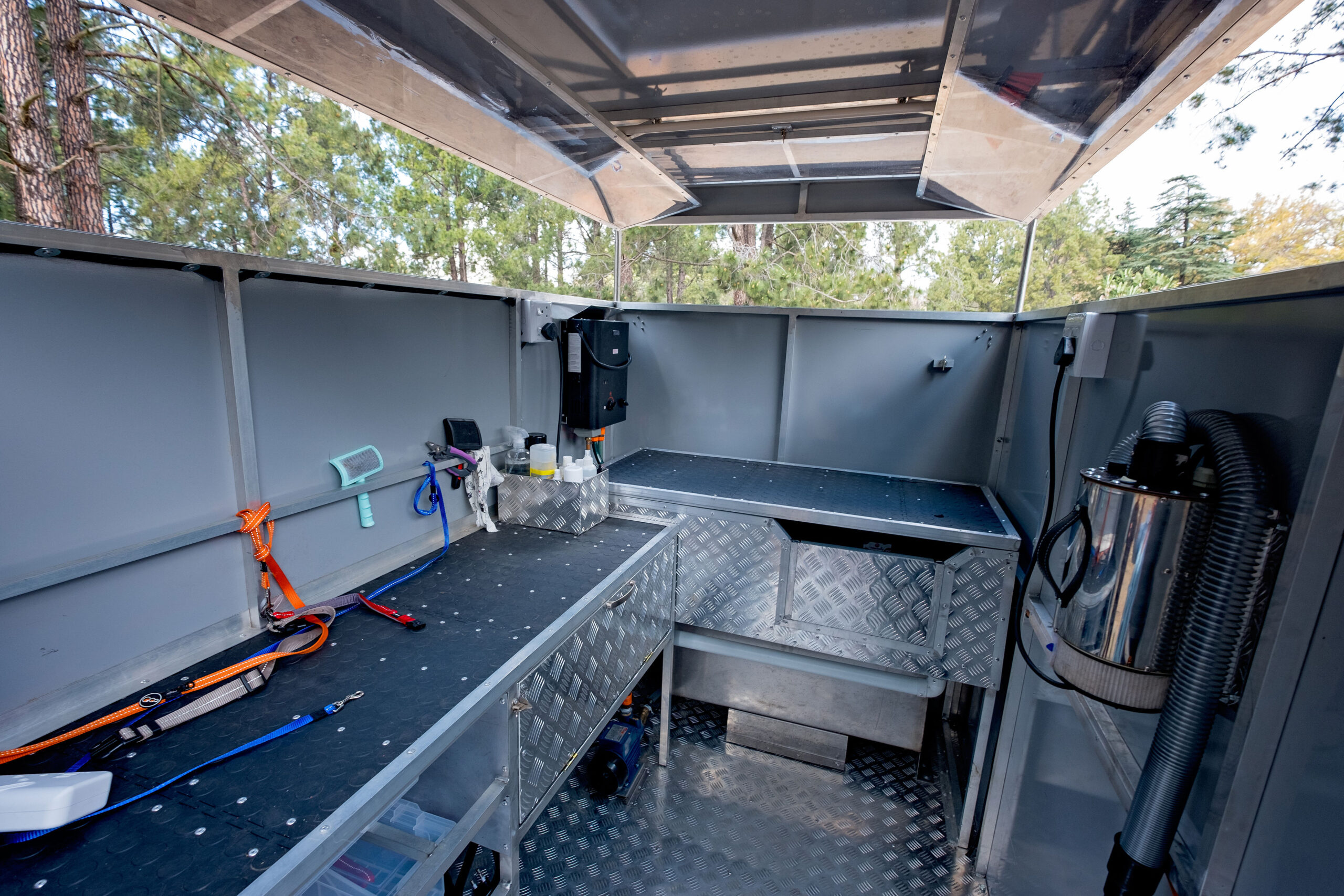 Our vehicles have all the equipment we need we will only require an electricity plug, cold water supply (water will be heated by our mobile geyser) and a clean towel for your pet.